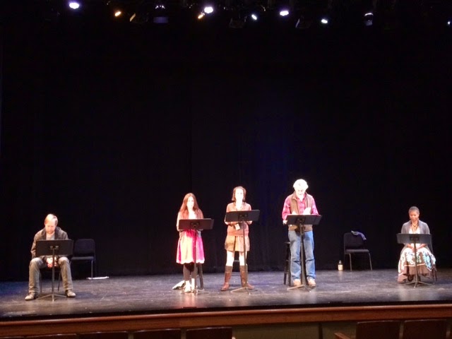 Invités étrangers particulièrement choyés, les 6 International Playwright Observers et leur "drama mamma" Cecily m'ont accueillie dans leur groupe aussi curieux qu'ouvert et généreux. Dimanche matin, ils ont lu un extrait en vo de leur dernier texte jeunesse, dans la forme "slam poétique" promue par WLPG dont Kim Peter Kovac est l'un des fondateurs : sonorité et rythmes évocateurs des langues étrangères sur scène et additionnées, force du texte lu par son auteur et richesse de la réception intuitive. Ensemble, nous avons écrit une histoire originale pour l'anniversaire d'Afeif.